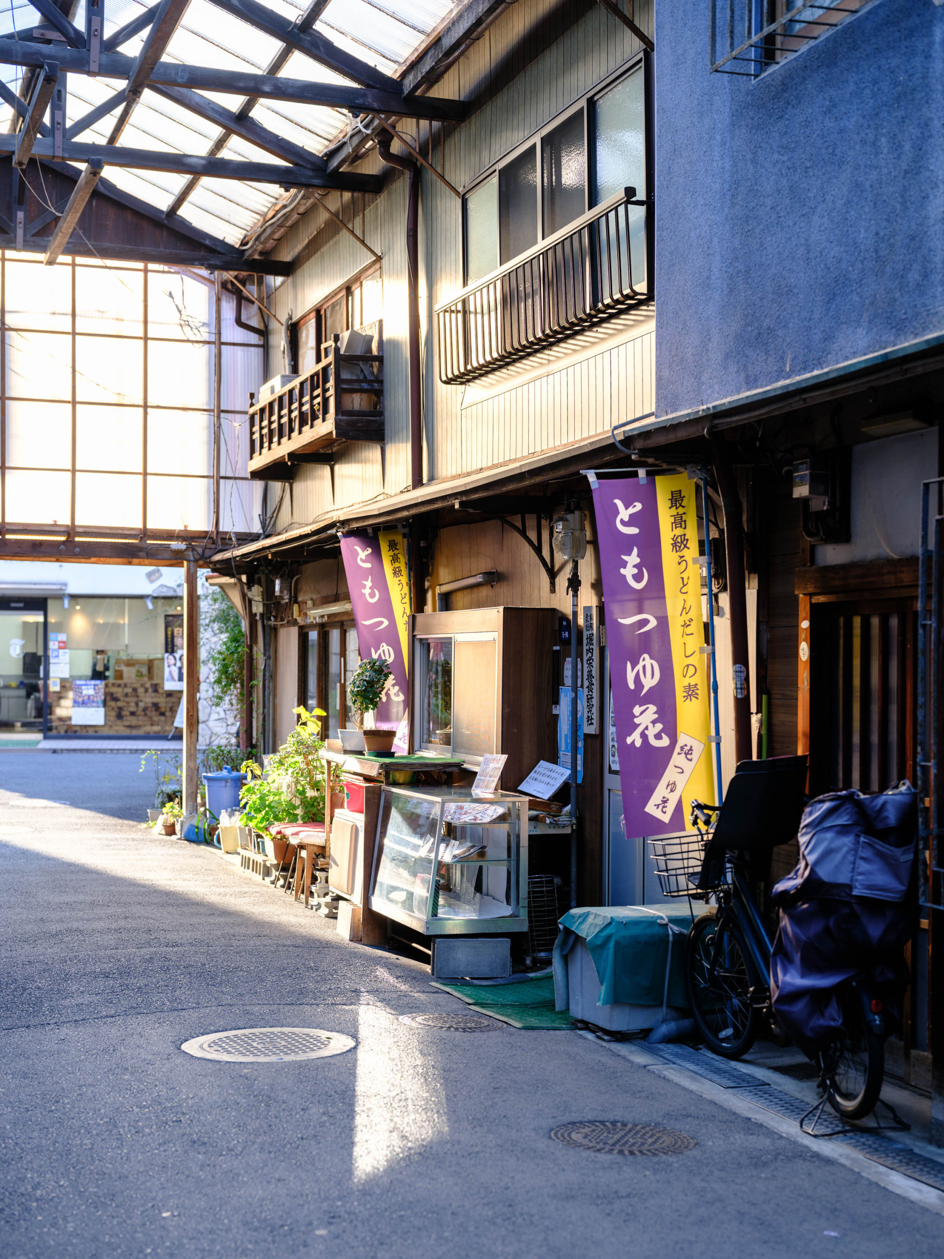 「ともつゆ花」と書かれた紫色ののぼりが掲げられたこの場所が、うどんだし屋さんであることをご存じでしたか?